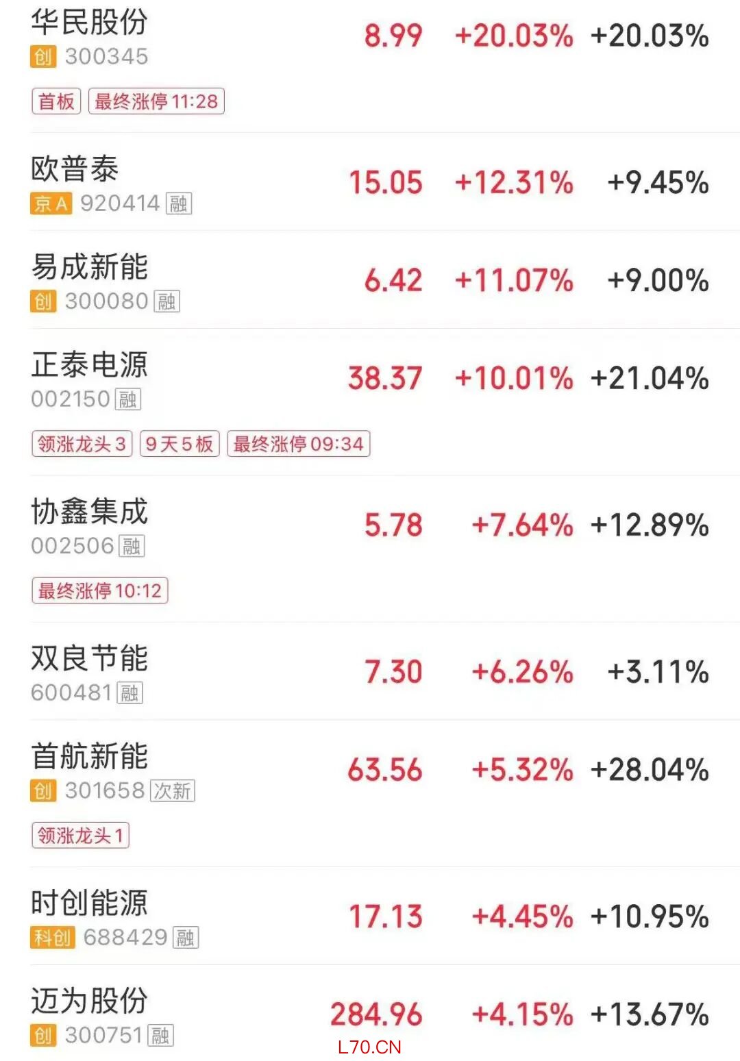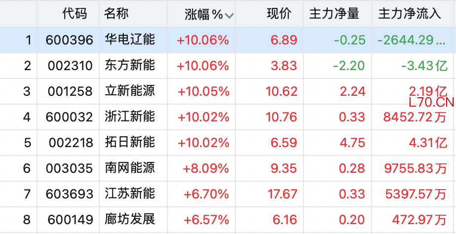 绿电概念股持续回升。华电辽能录得6连板,浙江新能、东方新能、立新能源、拓日新能均涨停,江苏新能、南网能源、廊坊发展等跟涨。