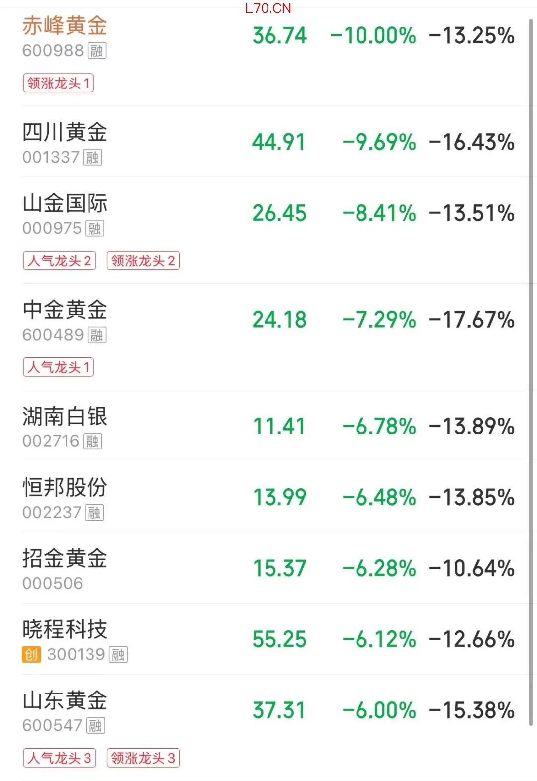 下跌方面,贵金属板块大跌,赤峰黄金一字跌停。