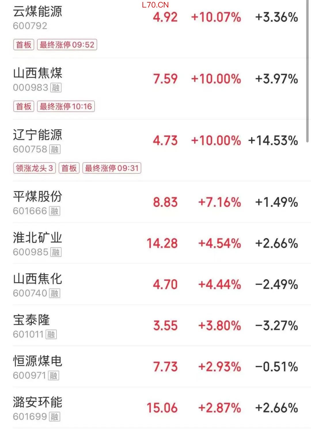 A股传统能源板块逆市上涨,煤炭股领涨。辽宁能源直线拉涨停,“买一”位置封单一度超124万手。山西焦煤、云煤能源均录得10cm涨停,千亿巨头陕西煤业、中煤能源股价纷纷飘红,平煤股份涨超7%,山西焦化、淮北矿业、宝泰隆、潞安环能等涨幅居前。