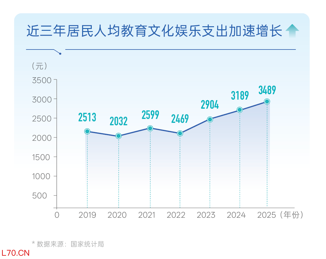 巨量引擎与第一财经商学院联合发布的《2026巨量引擎教育行业营销白皮书》(下称白皮书)显示,教育始终是家庭消费结构中最具韧性的支出之一。近几年,居民人均教育文化娱乐支出持续上行,并自2023年起明显提速。