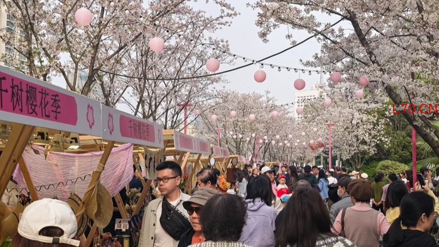 记者在现场观察到,这里的游客构成呈现出显著的多元化特征。除了携家带口的本地市民游客,海外游客的比例之高令人印象深刻。他们三五成群,或在近900米的樱花步道上漫步拍照,或流连于河滨的“樱花市集”摊位。