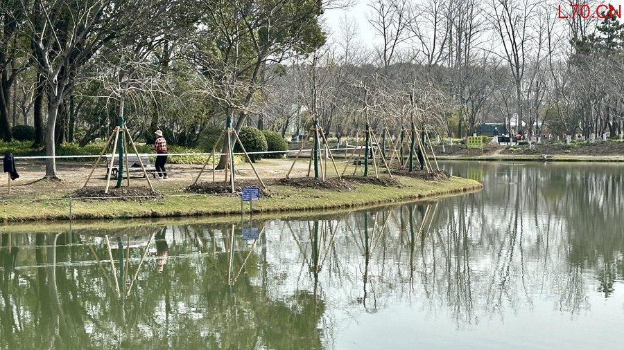 在樱花岛河畔,70多株垂枝樱的枝条上已长出了大大的花苞,预计再过一两周将进入花期。