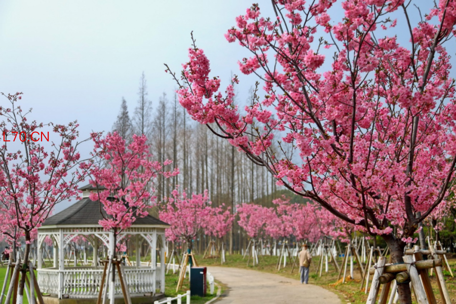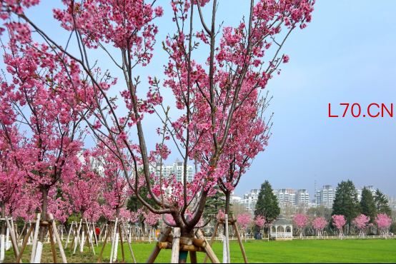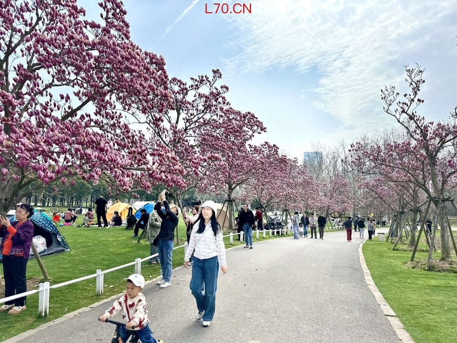 元股证券今天上午,世纪公园乡土田园区半月形草坪上的阳光樱已盛放,一条总长近200米的樱花道吸引了不少游客。绯红色的樱花堆云叠雪,开花量已达三四成。