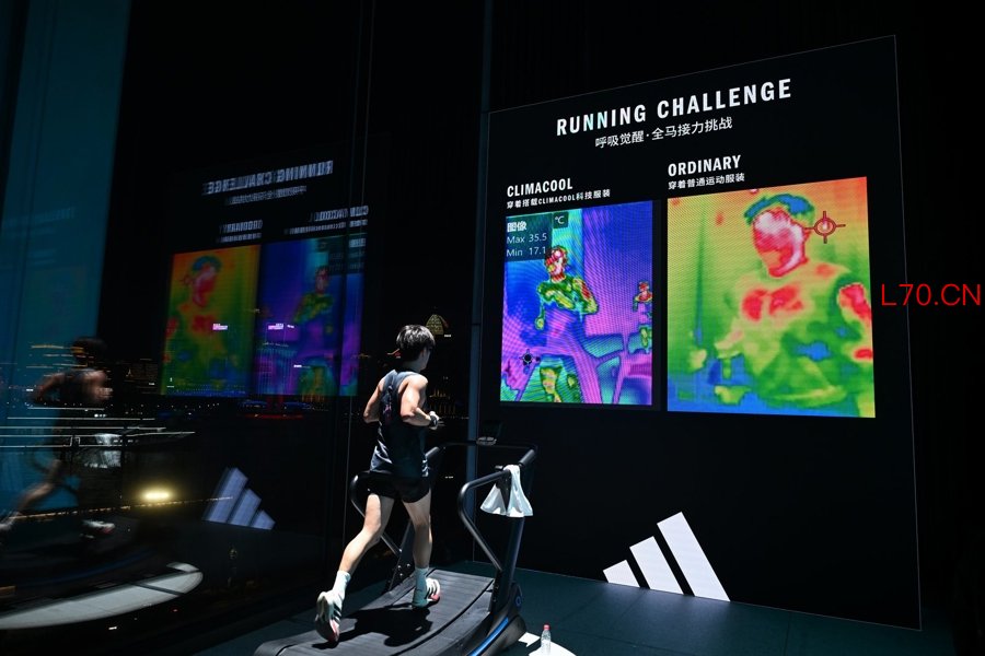 在美术馆二层,阿迪达斯精心打造“呼吸科技创新展厅”,呈现CLIMACOOL清风透气科技平台下的最新创新产品矩阵,覆盖高强度运动场景到运动生活美学。而在美术馆三层,阿迪达斯将全程马拉松(42.195公里)首次置入室内空间,十位跑者以接力形式完成挑战。现场设置热成像检测系统,实时捕捉跑者奔跑过程中的体表温度变化,通过热成像画面,直观呈现“穿戴CLIMACOOL产品”在运动中带来的降温效果与体温调控表现,让科技的力量可感可及。