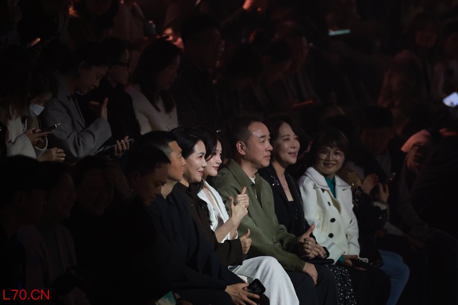荷比俪品牌代言人李一桐(一排中间身着白色服装)现身秀场。海沙尔摄