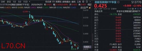 4月1日,港股共振高开,恒指、恒科指双双涨超2%,腾讯控股涨超4%,阿里巴巴-W、快手-W、哔哩哔哩-W涨逾3%,美团-W涨超2%,小米集团-W涨逾1%。港股AI核心工具——港股互联网ETF华宝(513770)场内价格现涨超2%。