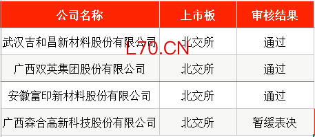 广西森合高新科技股份有限公司(下称“森合高科”)的北交所IPO则暂缓表决。